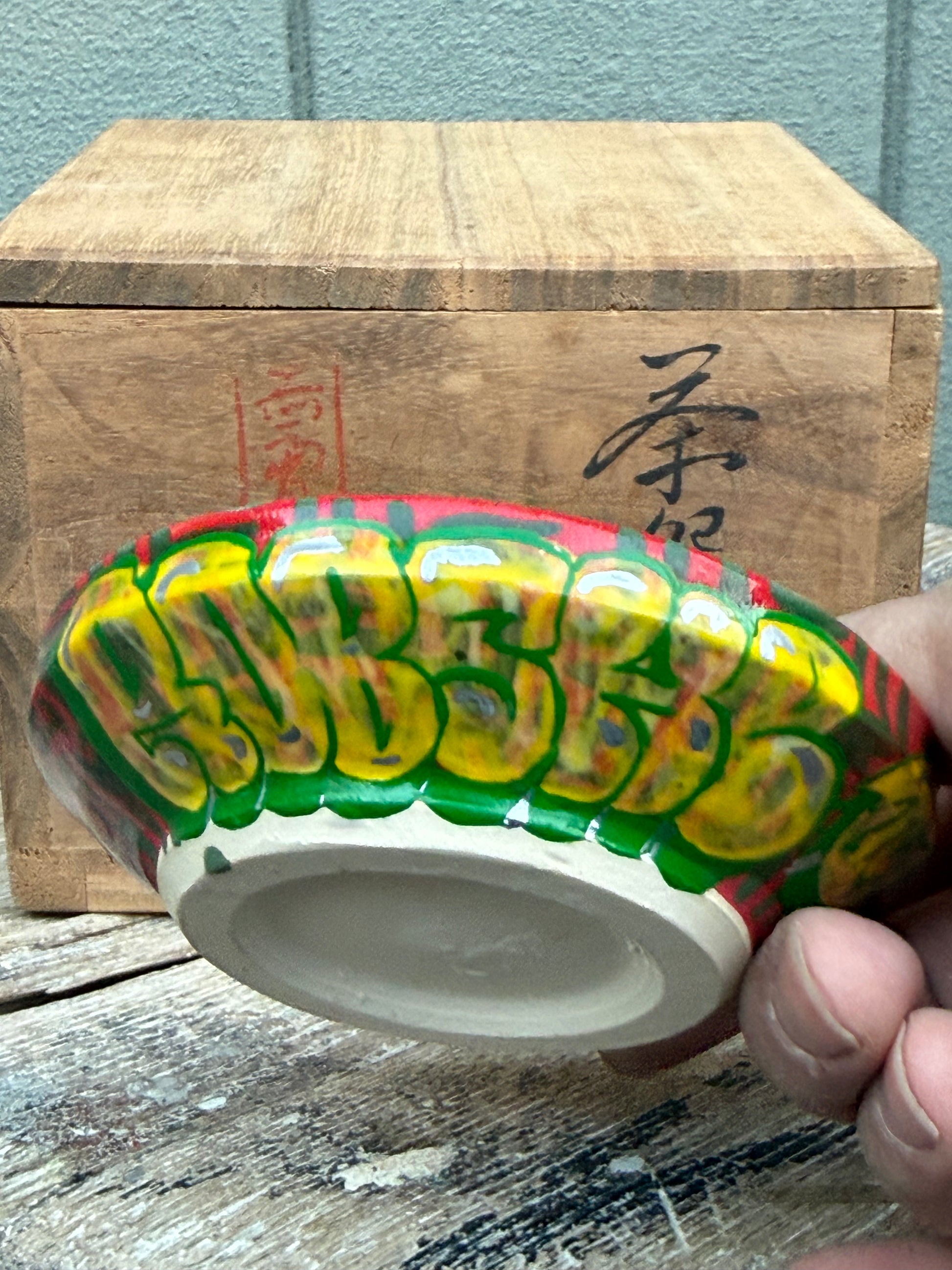 graffiti hand painted, wheel thrown by Roberto Lugo, soda fired.