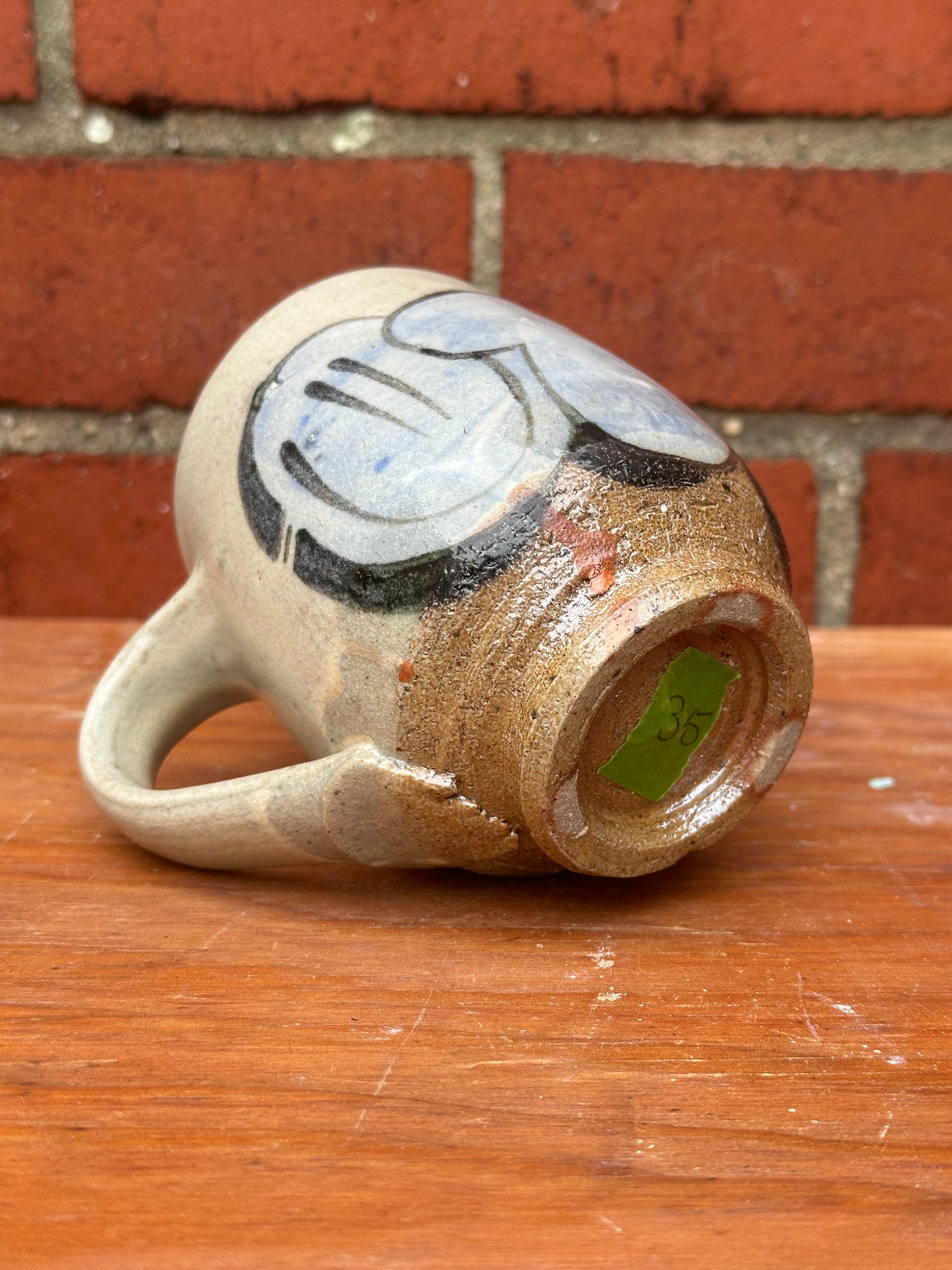 Wheel thrown, salt fired mug. Hand painted